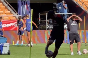 馬競(jìng)正在備戰(zhàn)這場(chǎng)決賽,馬競(jìng)主帥西蒙尼在賽前的訓(xùn)練中顛球,展現(xiàn)了自己的嫻熟腳法。