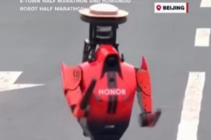2026北京亦莊人形機器人半馬成功舉辦,榮耀機器人“閃電”(視頻所示)以50分26秒奪冠。